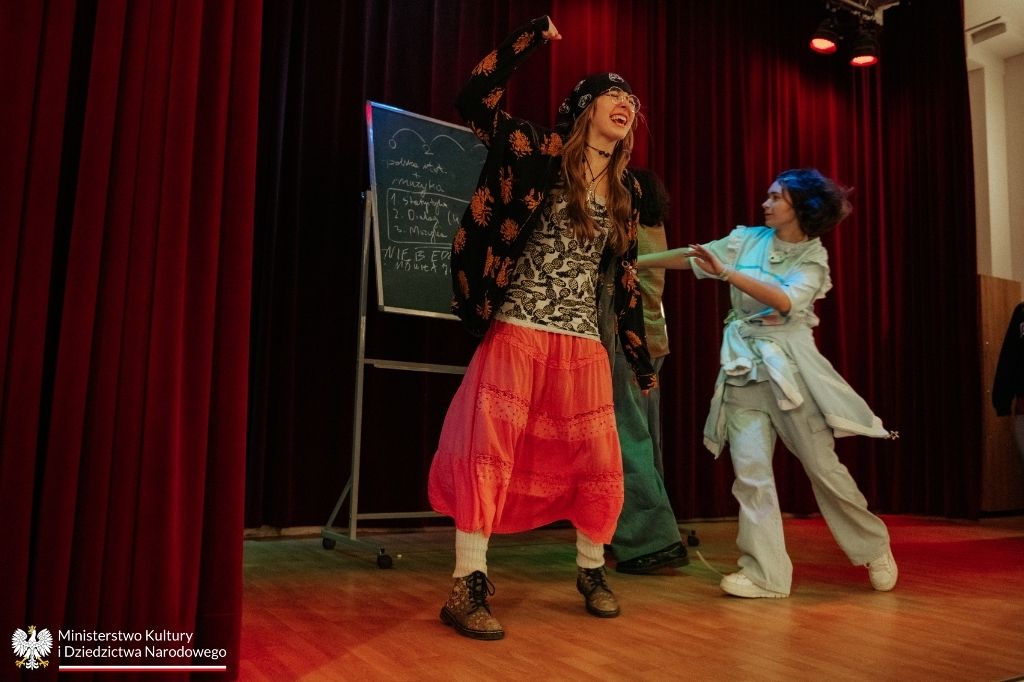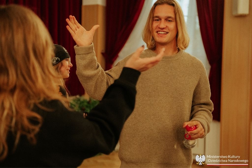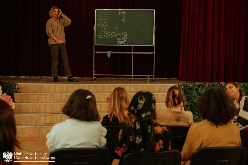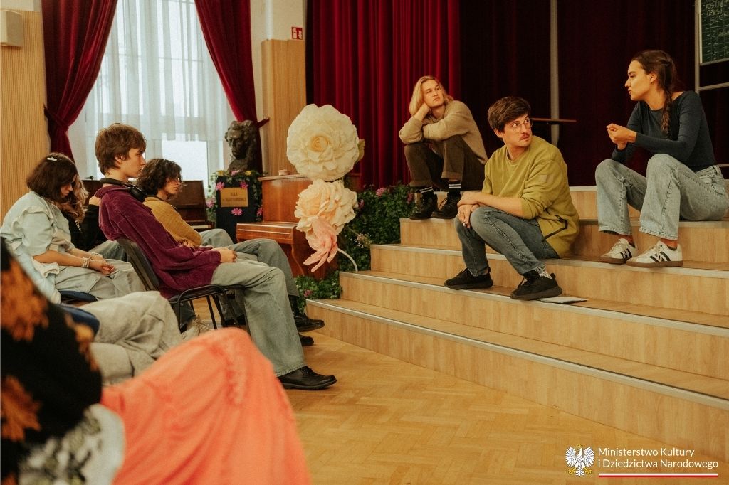Jesienią 2025 r. przeprowadziliśmy serię warsztatów dla młodzieży w liceach i w instytucjach kultury. Opowiadaliśmy osobom w wieku 15-19 lat o swojej metodzie pracy w teatrze, a później, po wspólnej burzy mózgów, ćwiczyliśmy ją w praktyce. Przez 9 godzin warsztatów tworzyliśmy spektakl i przechodziliśmy przez proces twórczy, który normalnie trwa kilka tygodni.