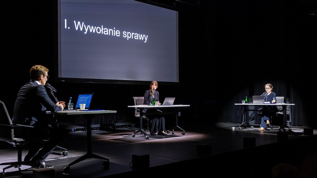 Spektakl ma formę dramatu sądowego. Publiczność jest skonfrontowana nie tylko z dowodami – materiałami wideo, zdjęciami, zeznaniami migrantów i osób działających w organizacjach pomocowych – ale też z konkretnymi wyrokami i orzeczeniami polskich sądów, które wskazują na to, że w pasie przygranicznym mamy do czynienia z kryzysem praworządności.